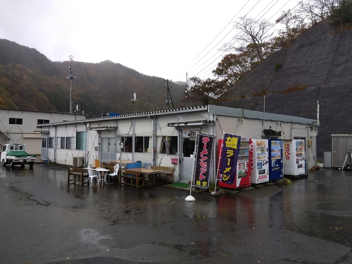 ルート(県道44号線)側から撮影。プレハブの建物で入口は裏(海)側にあります。